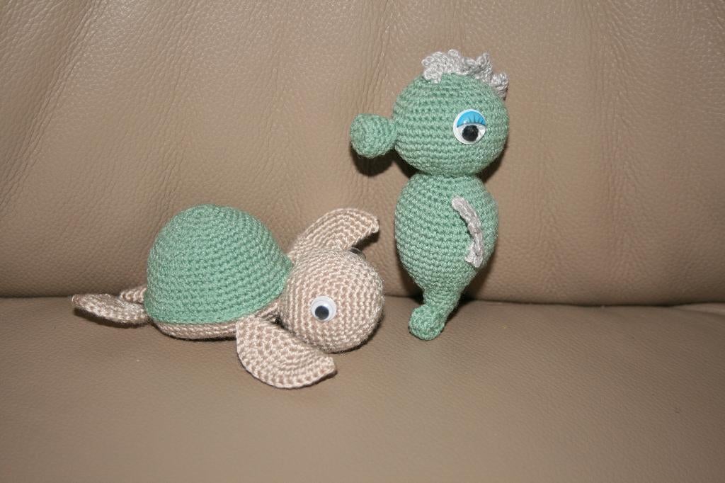 4 mrt 26Eline PMortsel - Gehaakte knuffelsKnuffel schildpad is ongeveer 11 cm lang zeepaardje is ongeveer 11 cm groot ik vraag 4 euro per stuk als er vragen zijn moet je maar sturen mvg cindyNieuw Ophalen of Verzenden