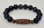 19 mrt 26VintVondstTorhout - Agata Negra Uit Brazilië, Zeer Zeldzaam, met Dzi Tortuga -Armband van natuurlijk brasiliaans zwarte agaat, zeer zeldzaam, met een dzi schildpad-sieraad, 20 cm omtrek, 39 g gewicht (195 ct), met de hand gemaakt. Armband van natuurlijk braziliaanse zwarte agaa