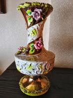 - Italiaanse porselein vazen in Italiaanse Limoges stijlPrachtig schouwgarnituur. Italiaans handwerk. Prijs is voor de drie.