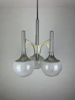 VandaagTopadvertentieCatawikiHeel België - Sciolari - Gaetano Sciolari - Lamp - Glas, AluminiumVintage jaren 60 hanglamp van gaetano sciolari voor sciolari italië.lamp heeft 3 melkglazen kappen, deze kap gaat van niet doorzichtig naar transparant wat een speciaal effect geeft.goede staat voor d