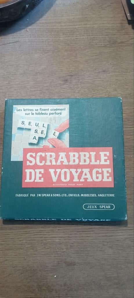 - Vintage Scrabble reisspelIk verkoop een vintage scrabble-bordspel voor op reis in de originele doos en met het bijbehorende boekje 3 balken en alle letters goede conditie prijs: 10€ 2e hands bezorgd of met de hand opgehaOphalen of Verzenden