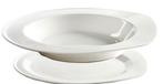 3 rechthoekige schalen, 8 grote borden, 9 dessertborden en 10 (soep) kommen