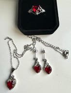 VandaagTopadvertentieCatawikiHeel België - Themacollectie - 925 zilver set: Le Coeur de La TerreEen 925 zilveren le coeur de la terre-set met hanger, ring en oorbellen met synthetische robijnen; alle stukken zijn gehamerd en gesigneerd, totaalgewicht 7 g, in uitstekende, ongebruikte staat. 925 Z