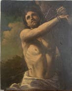 21 jan 25Marcel1915Poperinge - Scuola europea (XIX-XX) - San SebastianoSan sebastiano, een olieverfschilderij op houtpanelen uit de periode 1930–1940 van europese school, in volkskunststijl, afkomstig uit europa, afmetingen 25 x 31 cm, niet gesigneerd en in redelijke sta