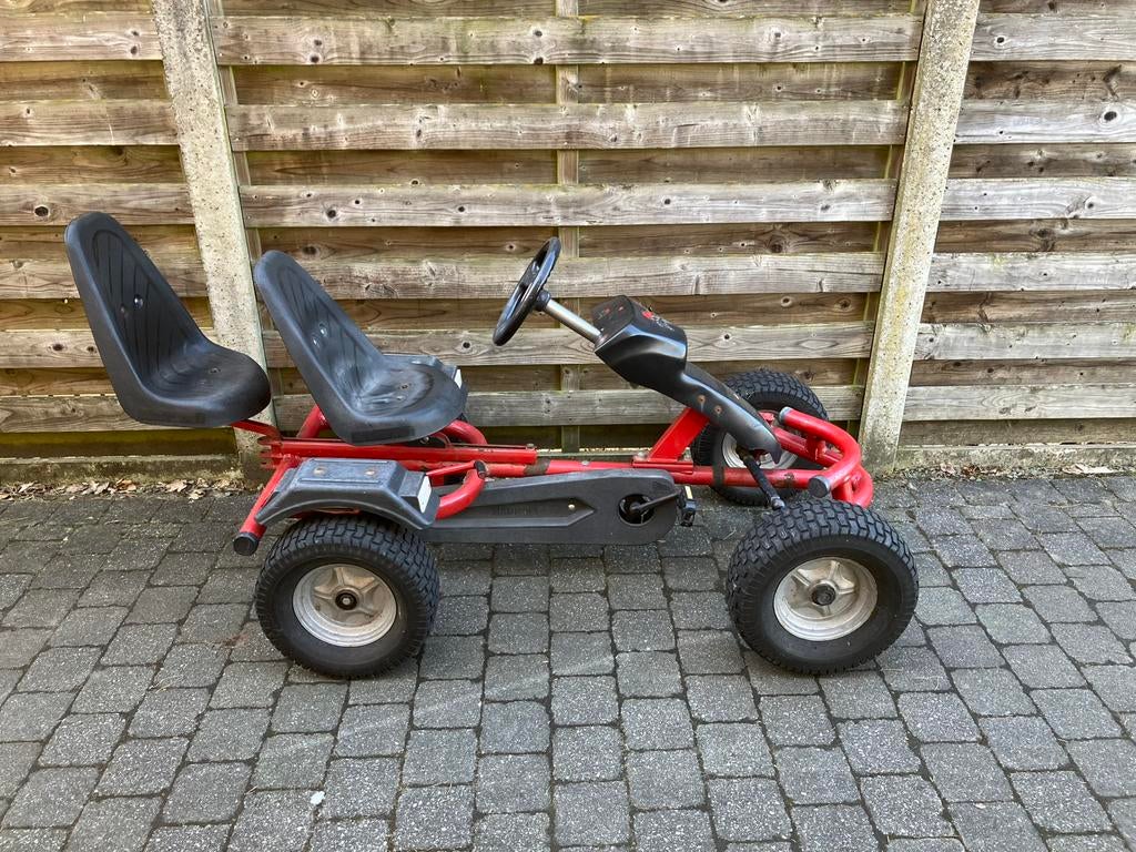 - Go-cartGebruikte go-cart te koop. Zeer stevige go-cart met extra zit. Linker achterband is wel telkens plat na 2 dagen, maar rest werkt alles nog vlot.Gebruikt Ophalen