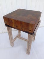 - Industriële apparatuur - Slagersblok van vintage hout -Italiaanse houten slagersblok met een houten steun-tafel, daterend uit 1950–1960, in italië, 83 cm hoog, 54 cm breed en 43 cm diep, circa 46 kg, met een goede gebruikte staat en lichte ouderdomsvlekke