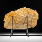 VandaagKatOugree - Étonnante tranche de bois pétrifié sur un supportUne tranche de bois pétrifié d’indonésie, polie et datant de la période néogène aquitanienne (environ 20,4–23,0 millions d’années), montée sur un socle personnalisé.