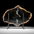 EergisterenlouispolyWalhain-Saint-Paul - Étonnante tranche de bois pétrifié sur un supportLame de bois fossilisé en indonésie, datant du néogène miocène (aquitanien, il y a environ 20,4–23,0 millions d'années), polie et montée sur un socle sur mesure.