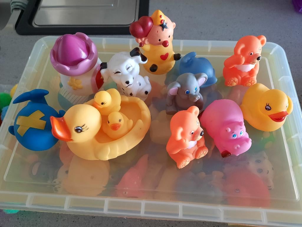 Om speelgoed eendjes schoon te maken, begin je met ze af te spoelen onder warm water. Voor hardnekkige vlekken of vuilgebruik je een zachte zeep of afwasmiddel. Laat ze daarna goed drogen, het liefst op een luchtige plek. Vermijd het gebruik van agressieve schoonmaakmiddelen, omdat die het materiaal kunnen beschadigen. Regelmatig onderhoud zorgt ervoor dat je eendjes langer meegaan en hygiënisch blijven voor gebruik.