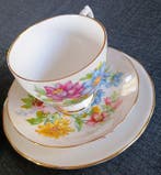 EergisterenTopadvertentieCatawikiHeel België - Royal Stafford - Theeservies (12) - Virginia Stock -Royal stafford bone china theeset in wit met multikleurige en gouden detailing, model virginia stock – dorchester, uit 1950–1960, bestaande uit 12 stukken (4 theekopjes, 4 schoteltjes en 4 dessertbord