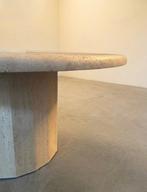 28 mrt 26BrittAntwerpen - Salontafel - Travertijn - Travertijn-salontafelTravertijnse salontafel met een ronde blad van ø 100 cm en een kolomvoet, beige van kleur, 50 cm hoog, in zeer goede vintage staat met lichte gebruikssporen. Deze massieve travertijn salontafel combin
