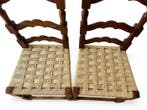 20 apr 26GilMaaseik - Stoel (2) - HoutSet rustieke houten stoelen uit italië, uit de jaren 1950, met zeegras koord zittingen, gedraaide poten en gesneden rugleuningen; elke stoel is 45 cm breed x 104 cm hoog x 41 cm diepte en weegt 6 kg,
