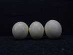 31 jan 25PaulineNazareth - Ostrich Eggs - Taxidermie wandmontage - Struthio camelus -Drie echte struisvogeleieren uit afrika (struthio camelus) uit 2021, totaalgewicht circa 1 kg, afmetingen circa 17 × 14 × 14 cm, in goede staat en geen cites-status, met een gat van ongeveer 2 cm aan