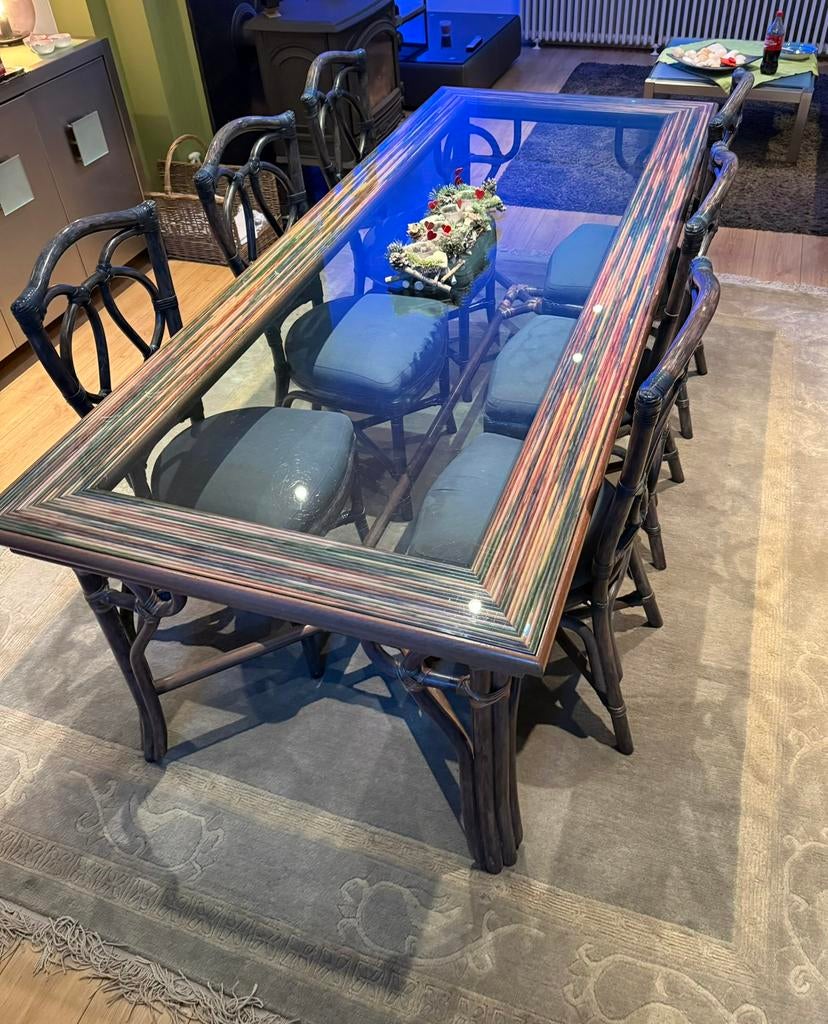 15 apr 26Ann.klBrasschaat - Eettafel met 6 rieten stoelenDirect beschikbaar af te halen in brasschaat weg wegens aankoop nieuwe tafel en stoelen lengte 200cm breedte 90cmOphalen