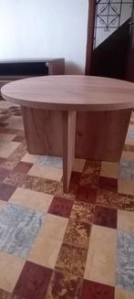Massieve houten salontafel op 2 vaste en 1 zwenkwiel. Populier. In goede staat. Afmetingen, plusminus 77 diameter, 40 hoog.
