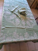 - Tafelkleed - 257 cm - 164 cm - Groen linnen tafelkleed uitVintage groen linnen tafelkleed uit de jaren 60 met twaalf witte servetten, oorsprong belgië, afmetingen 2,57 m bij 1,64 m, servetten 43x43 cm en totaal gewicht 1,8 kg. Groene linnen tafellakenk uit 1