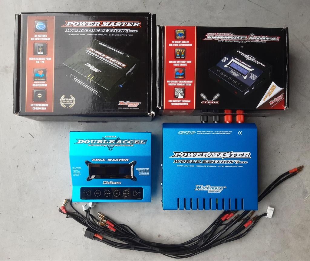 - Muchmore cell master laadstation Tamiya TRF blueMuchmore lader en voeding. In zeer goede staat. Compleet met alle kabels, doos en handleiding. Verzending mogelijkZo goed als nieuw Ophalen of Verzenden
