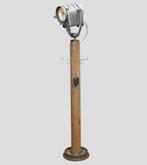 - Oude Theaterlamp vloerlamp Philips op hout trein wielOude theaterspot philips op houten paal. De voet is een zware ijzeren trein wiel. Kantelbaar, draaibaar en verstelbaar. Schakelbaar met bakelieten schakelaar en stopcontact. Met kapstok ophang hakenGebruikt Ophalen