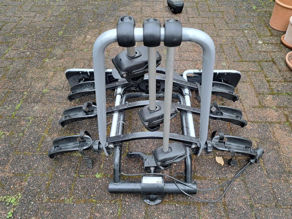 - porte vélo (3) basculant Thule euroride 943 7 /13 pôlesPorte vélo vendu avec adaptateur pour prise 13 pôles. Prévu pour 3 vélos. Il est possible de le basculer pour avoir facilement accès au coffre de la voiture. Parfait état , peut servi. Acheté il y a 3Gebruikt Ophalen