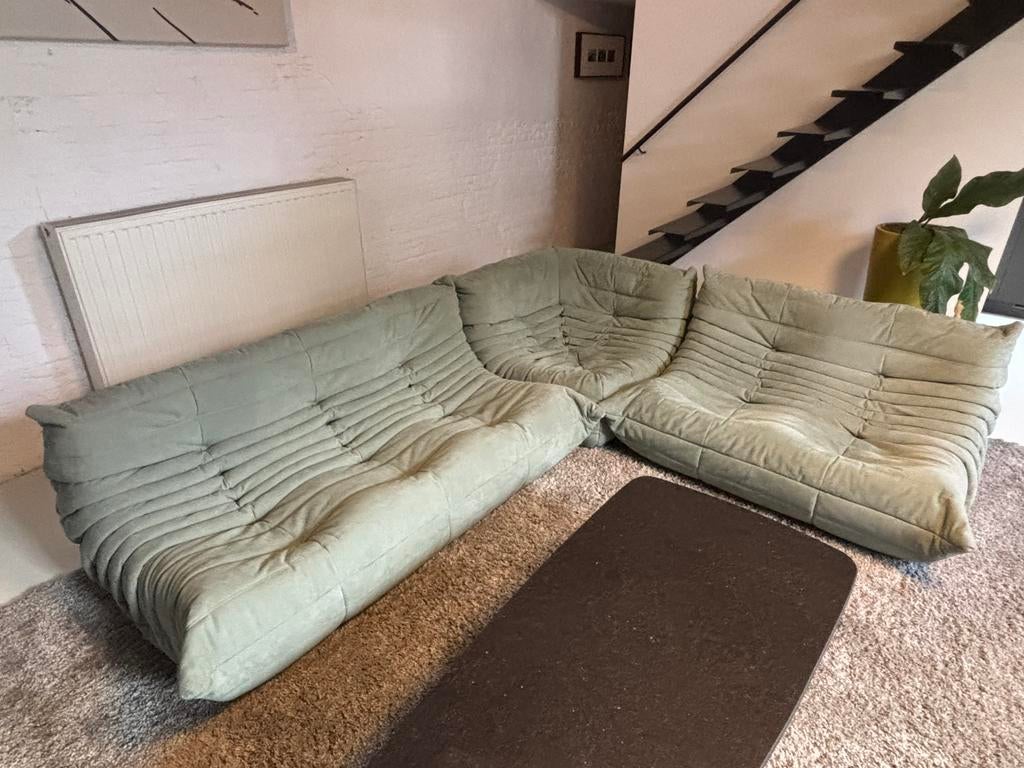 6 apr 26PhilipTorhout - 2 zit+poef ORIGINELE De Ligne Roset Togo in groene AlcantaraWegens geplande interieur verandering: de ligne roset togo in groene alcantara in gebruikte staat. Werden gereinigd. Ligne roset togo 2-zits bank afmeting: breedte 131 x hoogte 70 x diepte 102cm zithoGebruikt Ophalen Tweepersoons