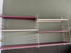 17 mei 25sunnysideupTienen - Tomado - Rek - Metaal - Wandrek combinatieTomado wandrek-combinatie van metaal uit nederland, met zes zwarte wandbeugels en acht metalen legplaten (vier rood, twee grijs, twee blauw) configureerbaar tot 3,35 m in totaal of drie aparte rekken,