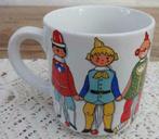 - Witte beker / mok met nostalgische trekpoppenWitte beker / mok met nostalgische trekpoppen. Met rondom 7 verschillende trekpoppen. Doorsnede 7,7 cm, hoogte 8,7 cm. Met scheurtje onderste gedeelte van het oor ( foto 4, nog stevig). Verder in een
