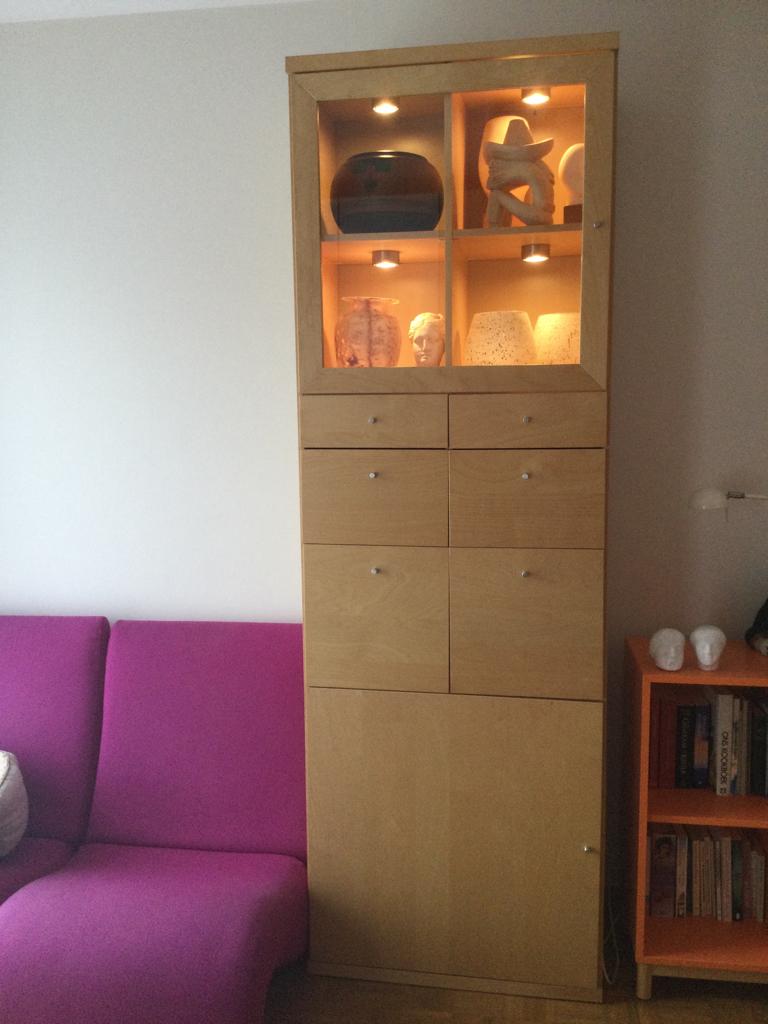 15 apr 26ArthurTremelo - Ikea kast, gedeelte vitrine met verlichting/laden/deurHoogte 2,2m, breedte 72cm, diepte 40cm. In zeer goede staat, geen krassen of beschadigingen. Vitrine met gezellige verlichting, 6 laden en 4 verstelbare opbergruimtes achter deur.Zo goed als nieuw Ophalen