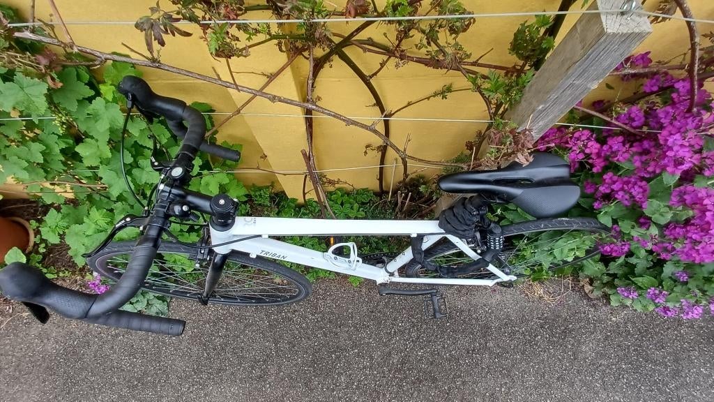 4 apr 26MaartenDiepenbeek - Triban 100 S witRacefiets wit maat s (155-164 cm) 7 versnellingen, remmen tektro rl576 gebruiksporen op het zadel en stuur (zie foto's) op te knappenGebruikt Ophalen