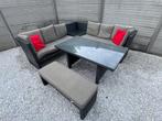 15 apr 26NadjeDendermonde - Ensemble de jardin HARTMANAntraciet grijze pvc tuinset. Samengesteld uit 3 stoelen met verstelbare rugleuning, 2 stoelen, 1 tafel van 160 x 090cm... Aandachtsgat in het midden van de tafel maar kan gemakkelijk worden gecamouflGebruikt Ophalen