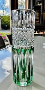 De groene Val Saint Lambert vaas is uniek vanwege zijn speciale kleur en glaswerk. De diepere, transparante groene tint geeft een gevoel van luxe en kunstzinnigheid, terwijl de handgemaakte afwerking elk stuk een persoonlijk karakter geeft. Bovendien zijn deze vazen vaak gevormd met elegante lijnen en complexe patronen die het licht prachtig kunnen breken.