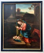 - Antonio Allegri detto il Correggio (1489-1534), Seguace di -Adoratie van het kind, 18e eeuw, olie op canvas, italië, ongesigneerd, toegeschreven aan een volgeling van antonio allegri detto il correggio, circa 1750, 90 x 75,5 cm, met lijst. Titel: antonio alleg