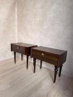 VandaagTopadvertentievidaXLHeel België - Nachtkastje - Hout - Twee vintage nachtkastjesTwee vintage nachtkastjes in mid-century modern stijl, van hout met messing details, uit frankrijk, ca. 1950–1960, Elk met één lade, bruine tinten en in goede staat met subtiele ouderdomsvlekken. Twee