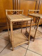 VandaagSamWevelgem - Nachtkastje - Rattan - Twee nachtkastjes van rotan.Twee vintage rotan nachtkastjes uit frankrijk, in redelijk goede gebruikte staat met mogelijk kleine ontbrekende delen, elk 56 cm hoog en 30 cm breed, gedateerd uit 1970–1980. 2 Mooie nachtkastjes van