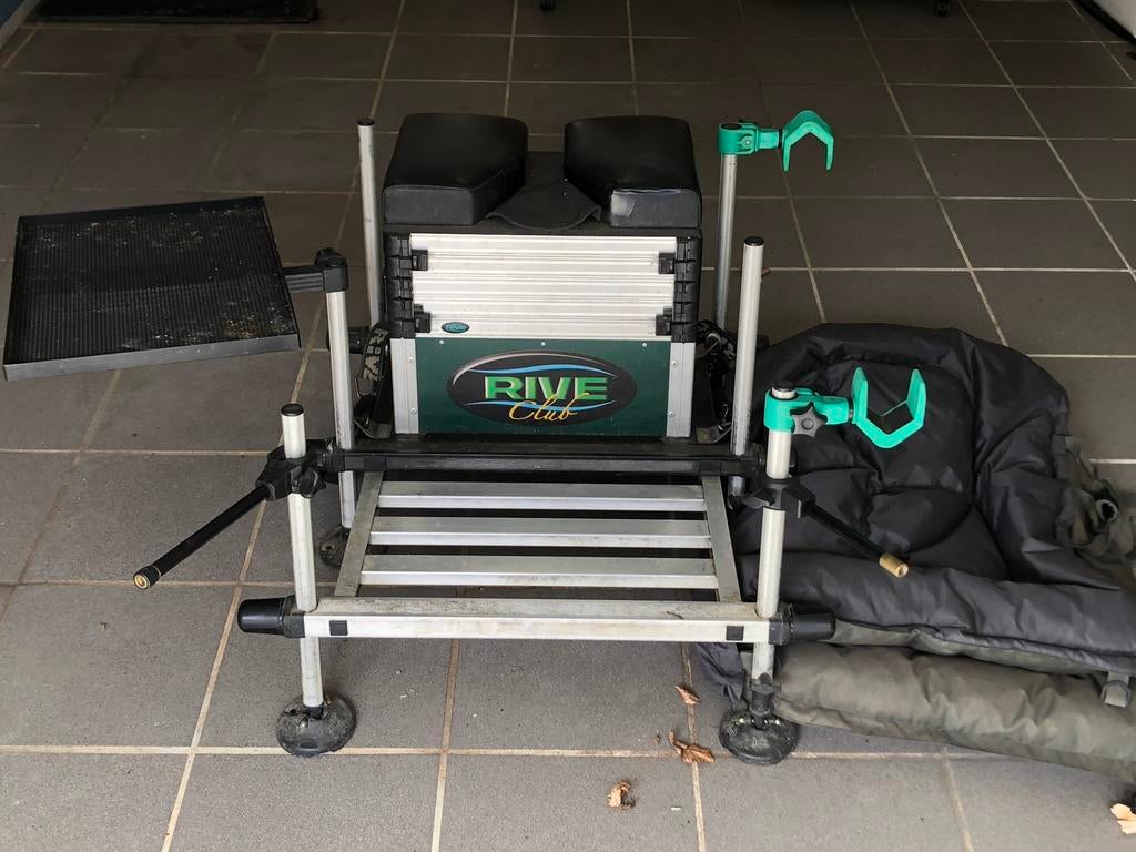 17 apr 26RegabazOudenaarde+Deel Ooike - Visbak merk Rive club.Visbak rive club (opbergruimte + 1 schuif) met tafeltje + 2 hengelhouders alsook 2 pukkelhouders en vismat in goede staatZo goed als nieuw Ophalen