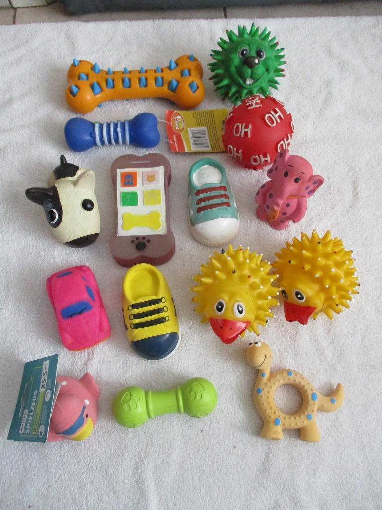 - speelgoed voor honden- foto 1 / verschillende speeltjes met piepgeluid, 7 tot 17 cm (0,50 cent per stuk) roze auto en hond verkocht - foto 2 / verschillende speeltjes met piepgeluid, 9 tot 18 cm (1 euro per stuk) - foto 3Gebruikt Ophalen of Verzenden