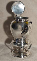 6 mrt 26TopadvertentieCatawikiHeel België - Van Kempen en Begeer - Aubert Juwelier Den Haag - TheepotTweedelig nederlands theepottenstel bestaande uit een .925 Zilveren theepot (485 g) en een .835 Zilveren voetstuk (228 g), totaal 713 g, hoogte 25 cm en diameter 23 cm, gemaakt in nederland door van k