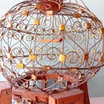 VandaagTopadvertentieCatawikiHeel België - Geïnspireerd door de Art Deco stijl Vogelkooi - Hout, IJzer,Handgemaakte vogelkooi van hout en ijzer met messing-inzetten, uit de jaren 1940–1950, in aziatisch geïnspireerde antieke stijl, met afmetingen 28 x 28 x 30 cm en circa 1 kg gewicht. Globe-ornamentale