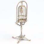 7 apr 26RudiKermt - NO RESERVE - C. & A. Lesener - Miniatuur Volière - Beeldje -Een zeer fraaie miniatuur van een vogelkooi van zilver .835, Gemaakt door c. & a. Lesener in amsterdam, circa 1970–1980, afmetingen 10 × 5 × 5 cm en gewicht 31,1 g, in goede staat met kleine ouder