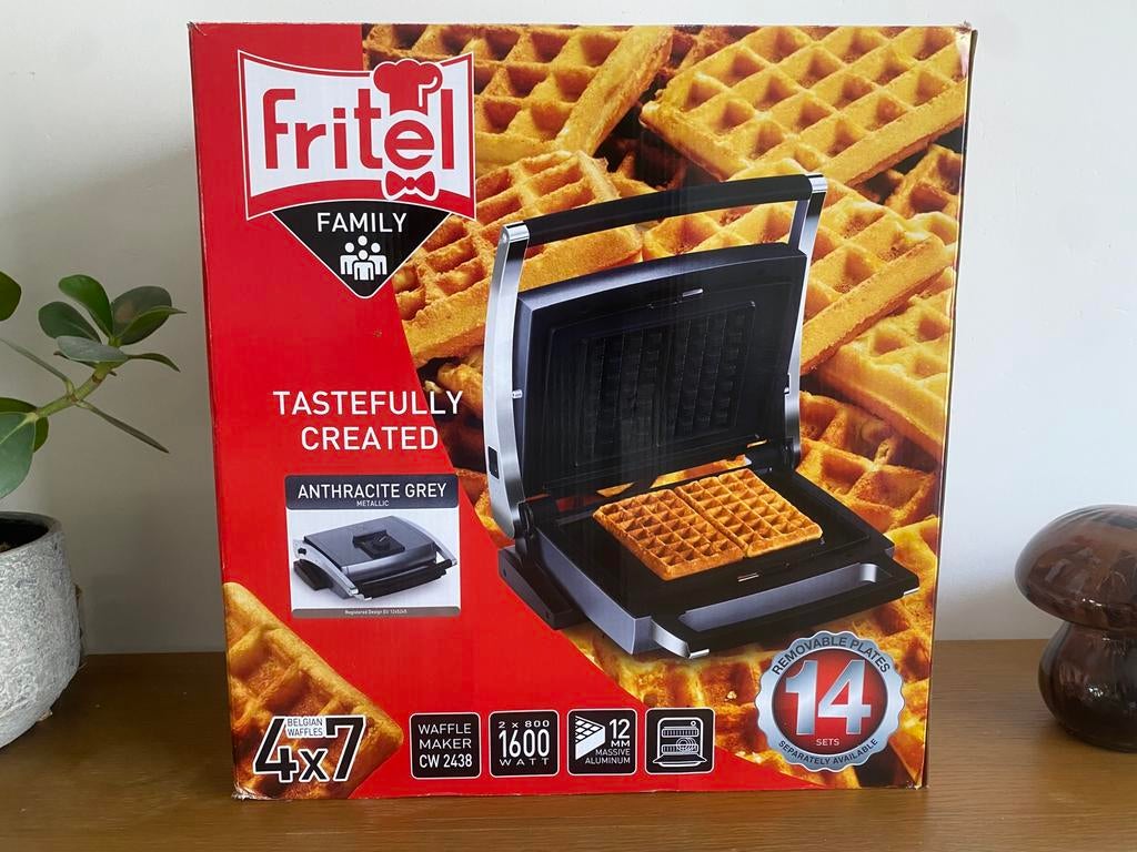 - Wafelijzer Fritel CW 2438Fritel cw 2438.( Nog niet gebruikt in verpakking! ) Aantal wafels: 2 wafel(s), wafel vorm: rechthoekig kleur van het product: antraciet, metallic. Vermogen: 1600 w. Breedte: 360 mm, diepte: 340 mm, hOphalen