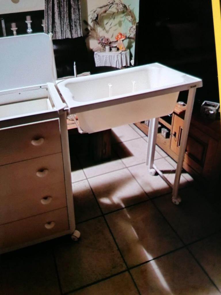 28 mrt 26123kinderwinkel NLPoppel - Wastafel babyTafel met verzorgingskussen en badje. Badje kan uitgetrokken worden gezien de onderkast op wielen staat. 2 Planken onderaan kunnen ook uitgetrokken worden. Lichte beschadiging van het hout. InclusiefGebruikt Ophalen
