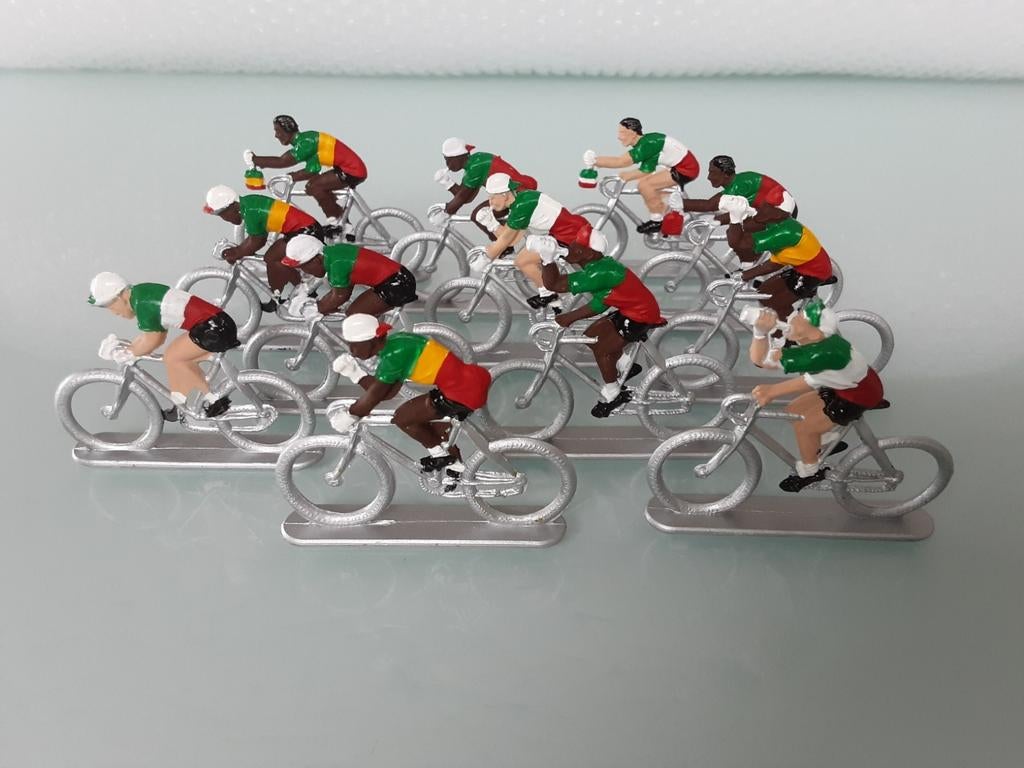 5 dec 24het coureurkeTurnhout - Miniatuur RETRO wielrenners uit plasticPelotonnetje minatuur 'retro' wielrennertjes uit plastic. Het zijn veel ploegen uit de jaren 60/70 80 en enkele van een paar jaar later - er zitten special groene tdf truien bij van oa patricVerzenden