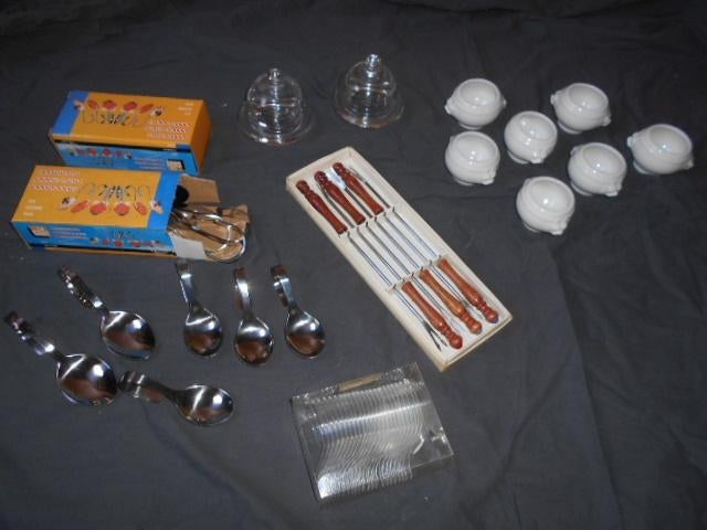7 apr 26VredesbrugWillebroek - Allerlei nieuw amuse gerei / Alles voor 5 €Alles voor 5 €. ++Allerlei amuse lepels en fondue vorken. Nieuw. ++2 Nieuwe glazen amuse stolpjes. ++7 Nieuwe witte mini (amuse) soepkommetjes met leeuwenkopjes. Hoogte: 5 cm en diameter : 5,5 cmNieuw Ophalen of Verzenden