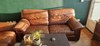Mooie stoere éénzit te koop met bijhorende grote poef van 80 x 100 in buffelleer. Geen scheuren, heel proper.