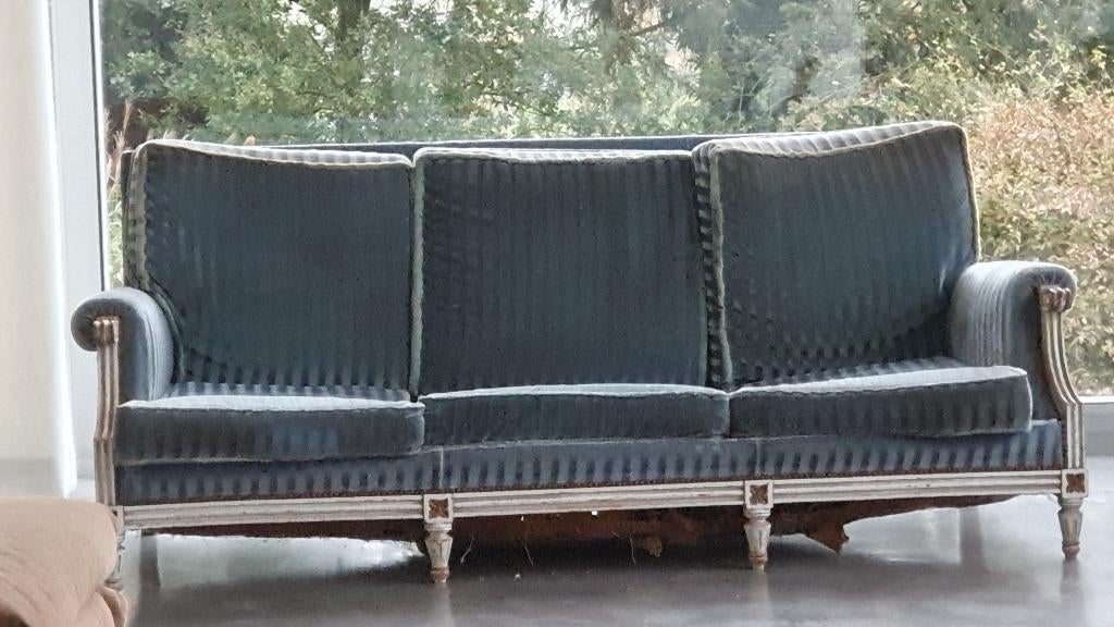 6 apr 26ConteMontigny-Le-Tilleul - Antieken zetelAntieken stoffen zetel kleur: bordeaux afmetingen: 137 cm lang, 103 cm hoog, 60 cm diep voorkant is in goede staat met hier en daar wat gebruikssporen. Het doek aan de achterkant is op twee plaatsen gGebruikt Ophalen Driepersoons