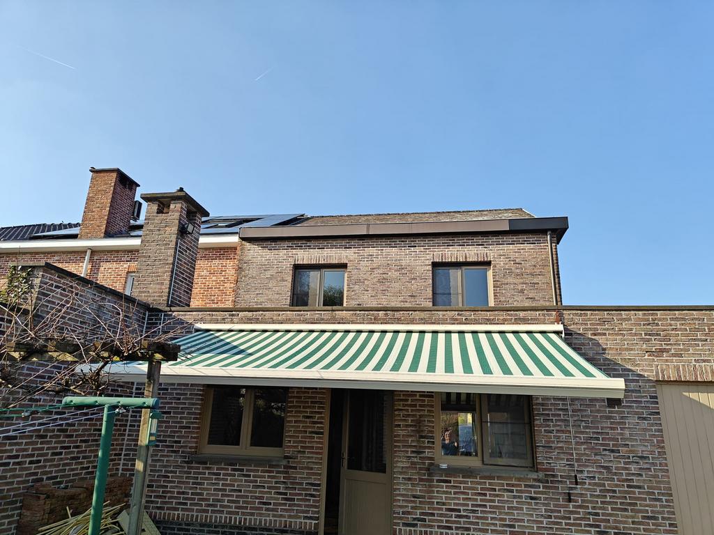 1 apr 26Erik.Aarschot + Deel Begijnendijk - Zonneluifel..Zonneluifel manueel, br.3,50M.uitdraai ong.3M..Ong.3 Jaar oud. Prima staat, knikarm systeem, weg wegens plaatsen overkapping.. Nieuwprijs = 1350,€.. 500,€= koopje.Ophalen