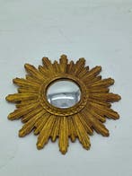 11 apr 26SunnyMere - Miroir mural - Résine - ZonnespiegelUn miroir convexe en forme de soleil avec une finition dorée, en résine, datant de 1980–1990, de 40 cm de diamètre, en bon état avec de petites traces d’usure liées à l’âge.