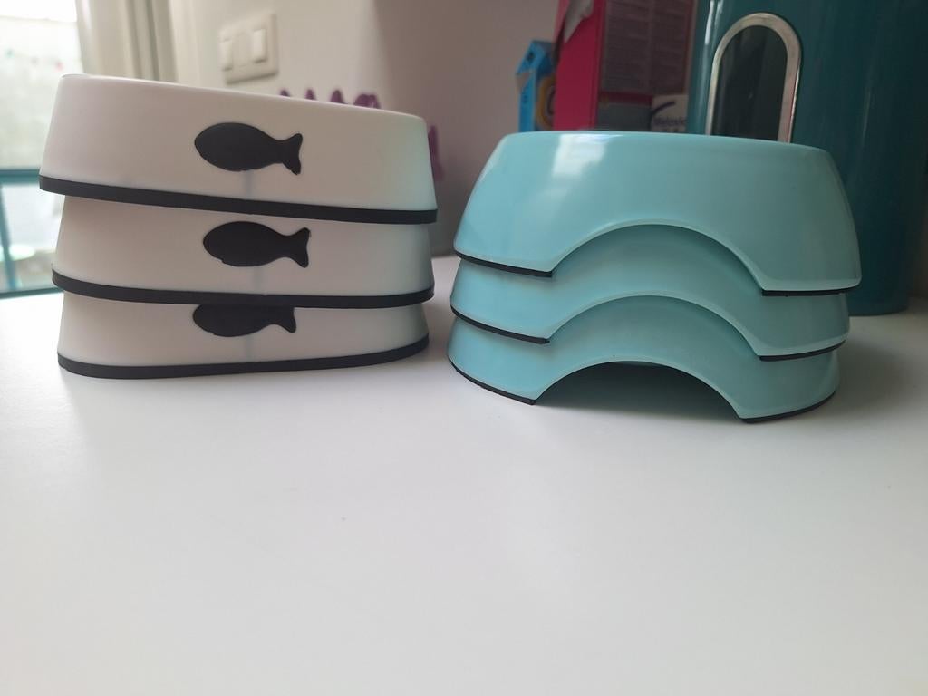 - Setje van 6 voerbakjes voor katten ZooplusSetje van 6 voerbakjes voor katten aangekocht op zooplus. 3 X turquoise en 3 x wit met visjes op de zijkanten. Allen hebben ze een rubberen randje onderaan tegen het schuiven en ze zijn vaatwasmachineZo goed als nieuw Ophalen of Verzenden