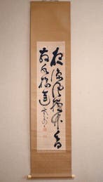 - Kalligrafie - samurai - zwaardvechter - twee regels -Meiji-periode japans handgeschilderde op papier hangende rol getiteld calligraphy - samurai - swordsman - two-line, toegeschreven aan en gesigneerd als naar yamaoka tesshu, gelicentieerde replica, tot