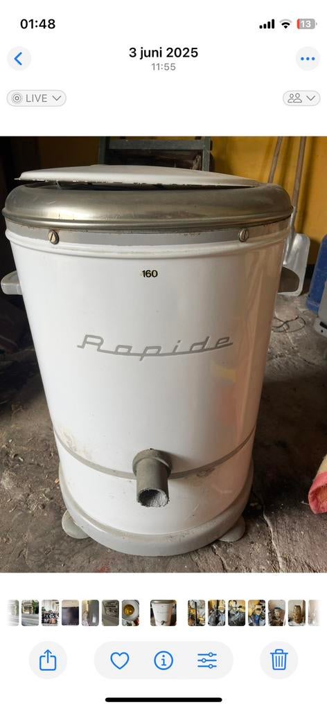3 aug 24andre ceulemansLebbeke - DroogtrommelAntieke vintage droogtrommel/zwierder, elektrisch van het gekende merk thomas, langs de buitenkant beetje aanslag metaal, maar binnenkant trommel alu minium in perfecte en werkende staat, inhoud is 3-Gebruikt Ophalen
