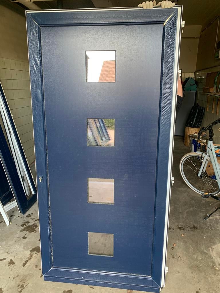 Voordeur met glas zijkant als dubbelglas pvc materialen met sleutels 3 pin cilider zijkant glas kan afgenomen worden maten 1,48 cm breed 2,09 cm hoog schade aanwezig foto’s folie zou afgetrokken moeteZo goed als nieuw Ophalen